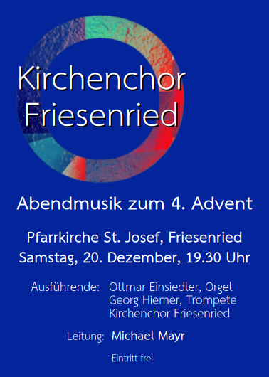 2025 | 2024 | 2023 | 2022 | 2021 | 2020 | 2019 | 2018 | 2017 | 2016 | 2015 | 2014 | 2013 | 2012 | 2011 | 2010 | 2009 | 2008 | zurück Samstag, 20. Dezember Abendmusik zum 4. Advent Sonntag, 19.10 Festgottesdienst zur Kirchweih Sonntag, 29. Juni, Sommerkonzert in St. Alban Konzert anhören Zeitungsartikel lesen Sonntag 23. März Patrozinium, Gesänge zusammen mit dem Jugendchor Samstag 29. MärzKonzert Bruckner/Fauré
